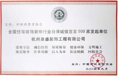 全國住宅裝飾裝修行業(yè)自律誠信宣言500家發(fā)起單位