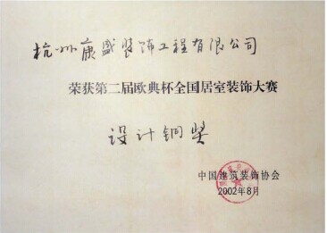 亞細亞杯中國杭州優(yōu)秀室內設計作品獎