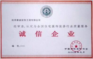 全國住宅裝飾行業(yè)質量服務誠信企業(yè)