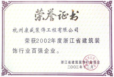 2002年度浙江省建筑裝飾行業(yè)百強企業(yè)